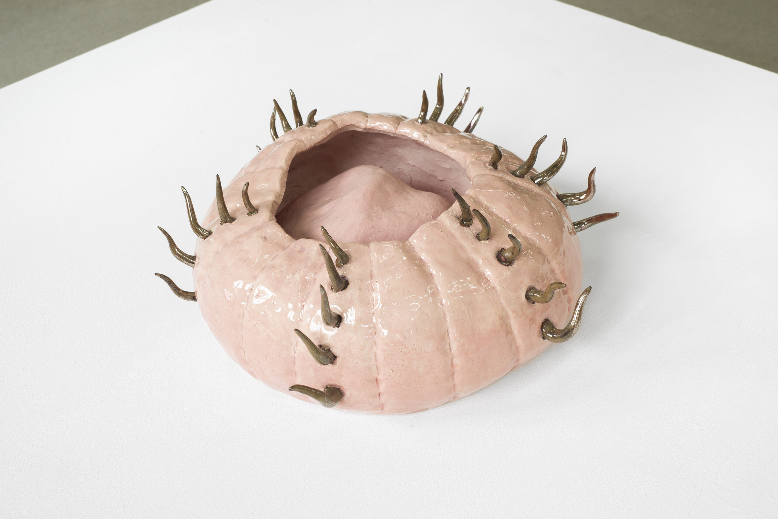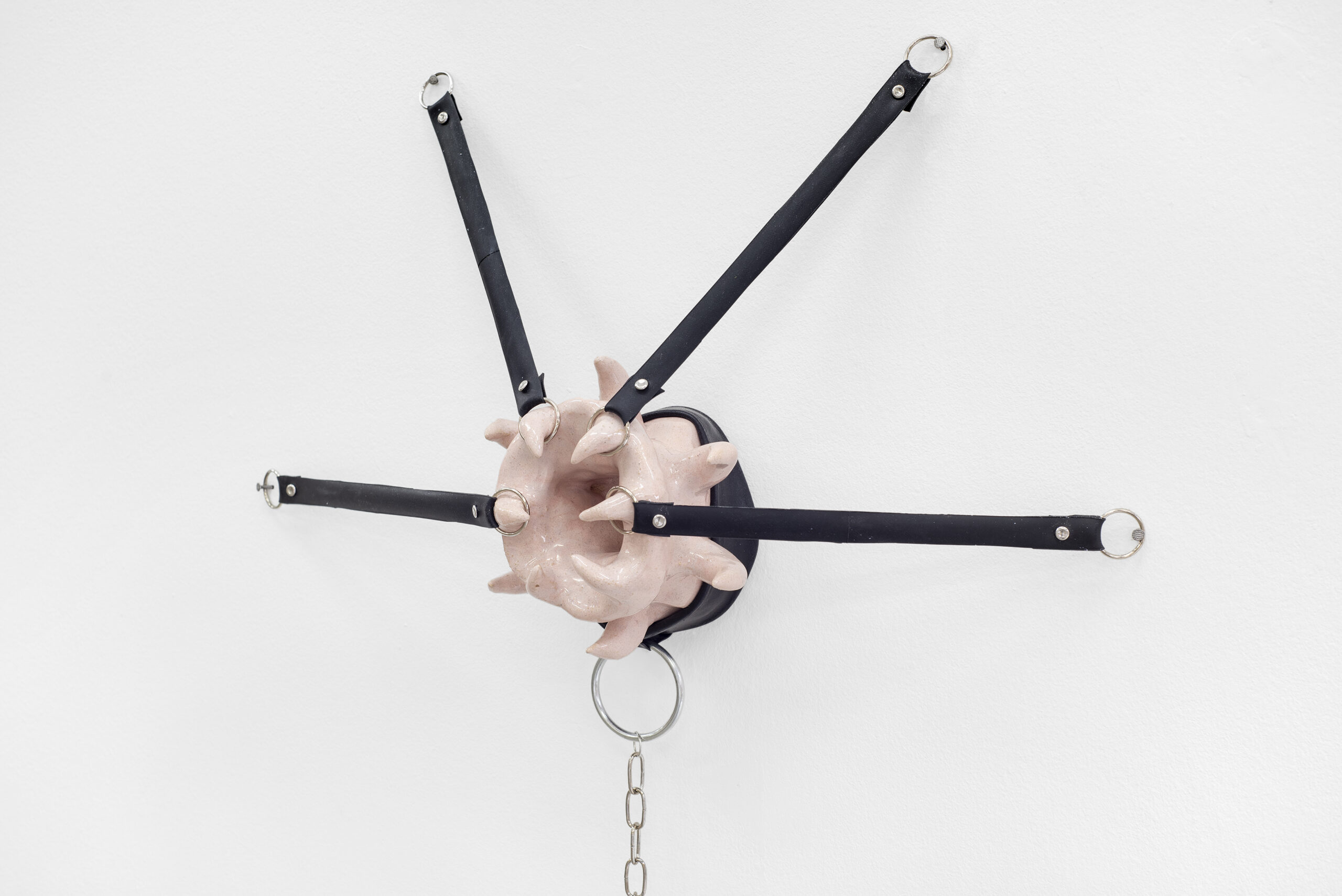 Ollie Gandul develops, through sculpture, an aesthetic of desire that resists clear definition. Ceramics, textiles, metal, and rubber combine into forms that oscillate between softness and hardness, attraction and resistance. These objects deliberately resist categorization: at times bodily, queer, playful, or even threatening. Their ambivalence makes clear that desire is never singular, but always suspended between pleasure and danger, intimacy and power.