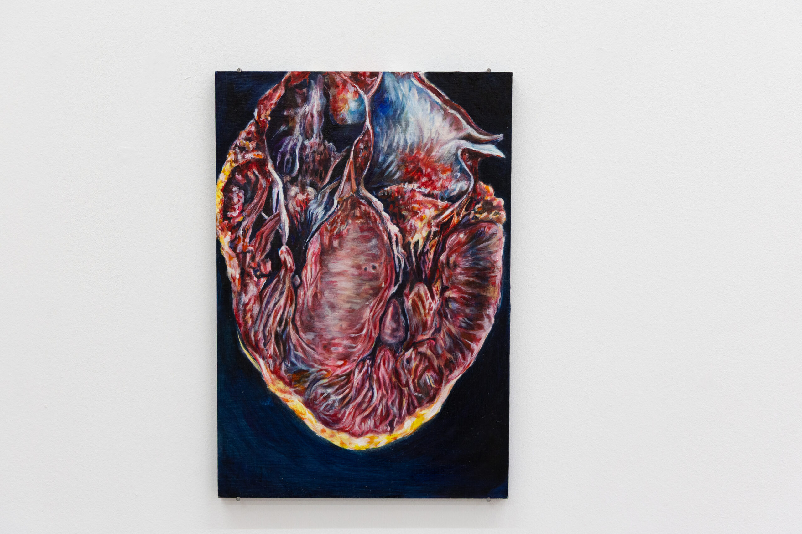 Felix Ebersbach examines the body as a projection surface for social order. Central themes in Ebersbach’s painting are desire and transience. Anatomically inspired works do not present the inner structure as scientific truth, but rather as a reflection on impermanence and bodily norms. What lies hidden within is not simply exposed, but revealed as a mirror of cultural inscriptions — inscriptions that themselves appear fragile and ambivalent.